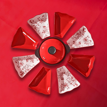 落日玫瑰系列圆桌盘子拼盘砂锅组合