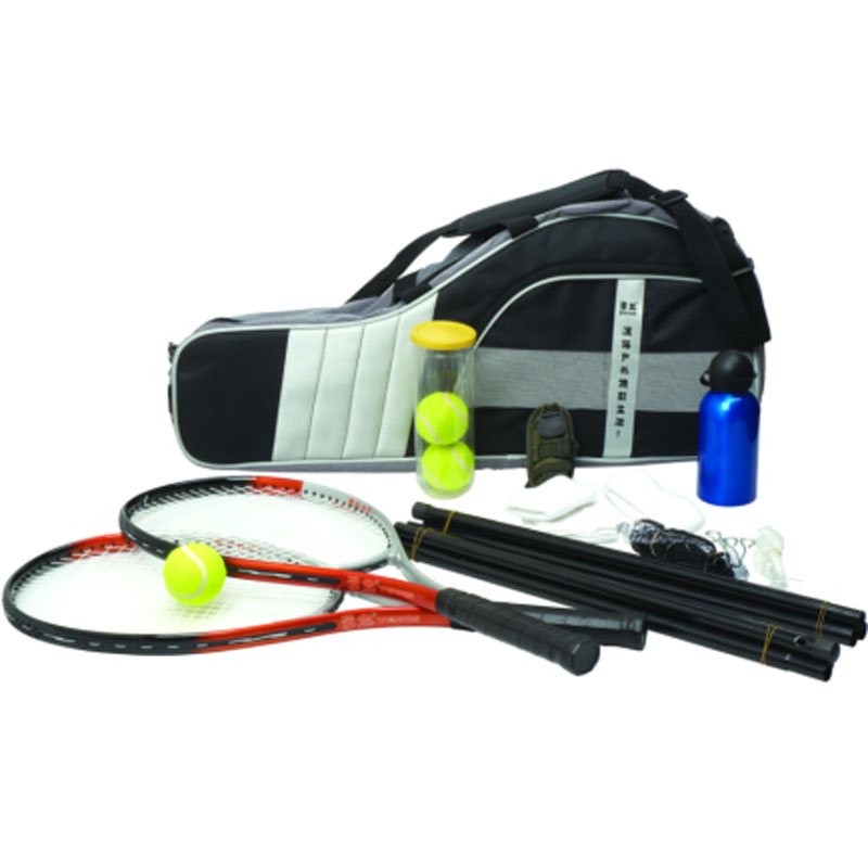 配件 | 多功能包+全铝高档网球拍2支+网球球3只+休闲手机套+0.5L运动铝质水壶+运动三件套(头巾+毛巾+护腕)+可拆网架+网 |